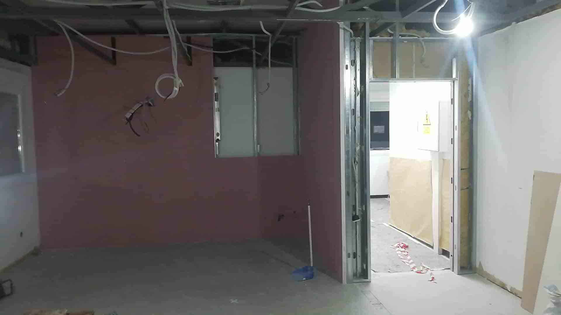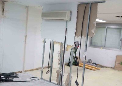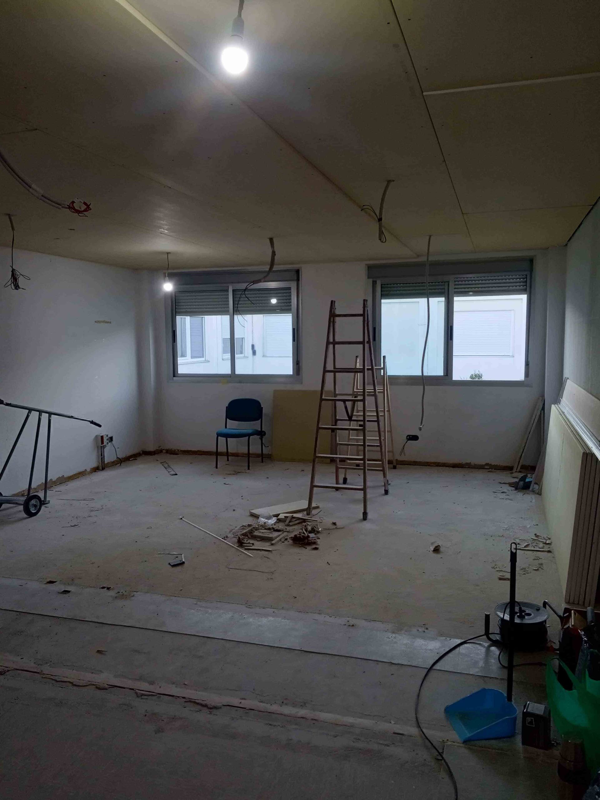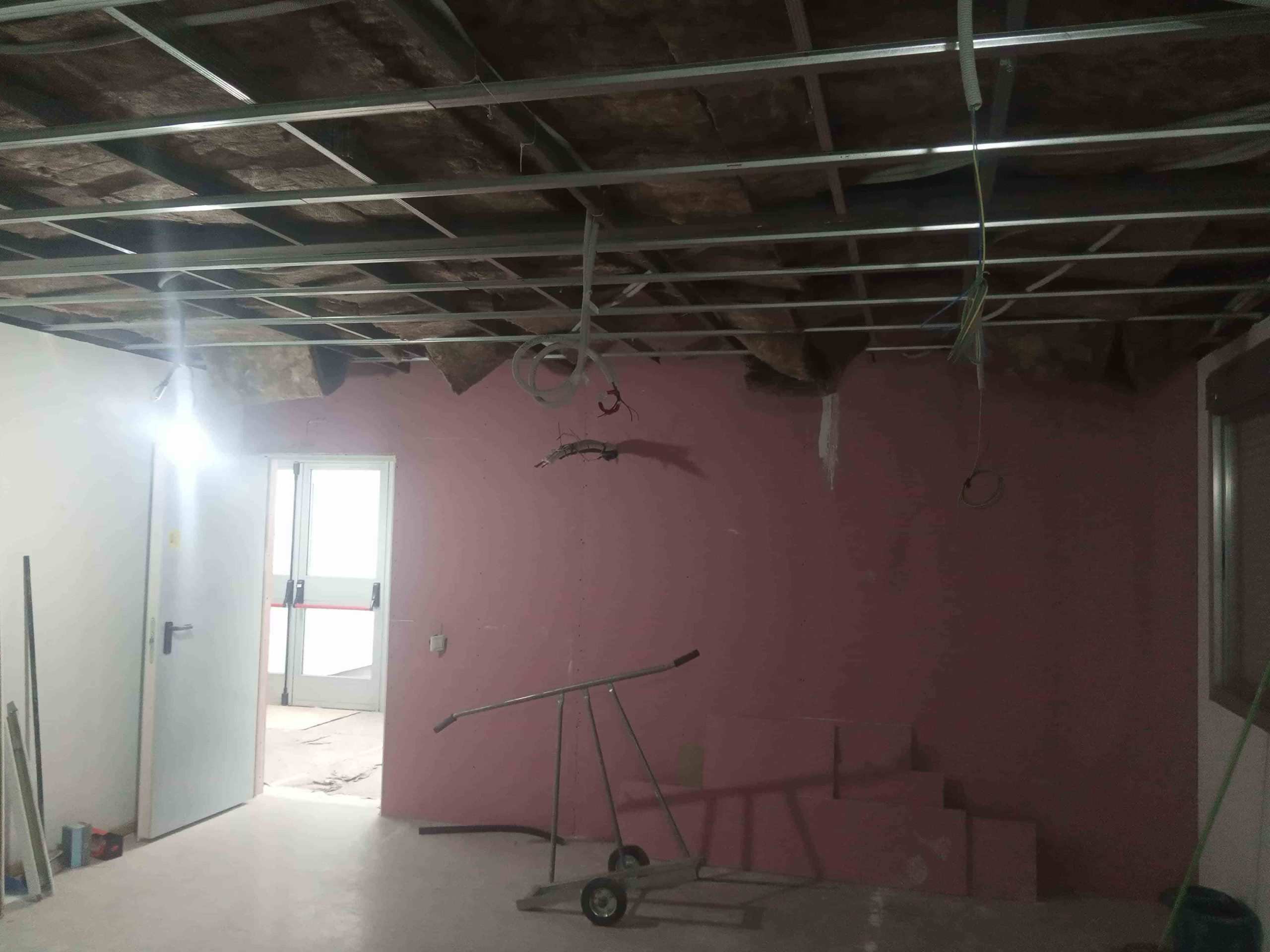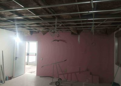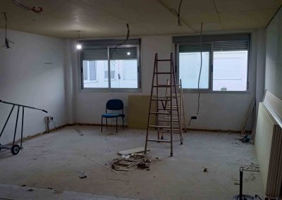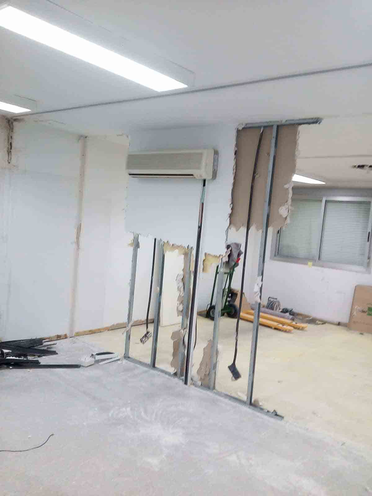 Se realiza la demolición de varios tabiques de pladur para unificar salas, así como todo el falso techo.